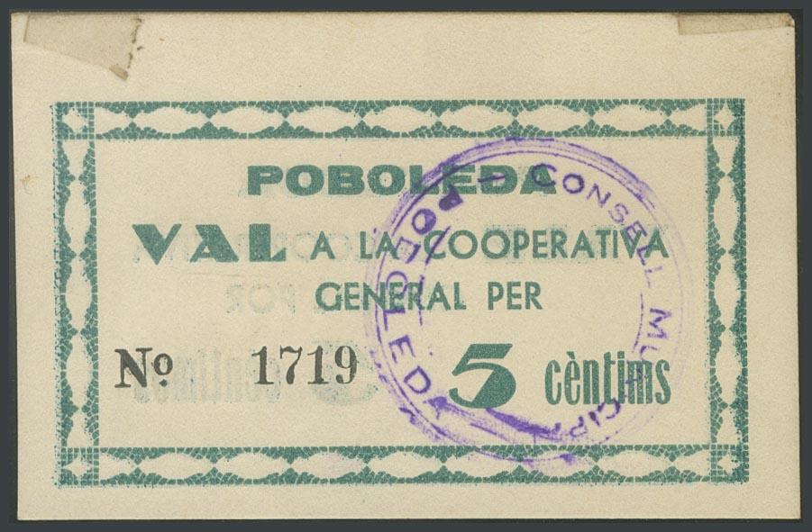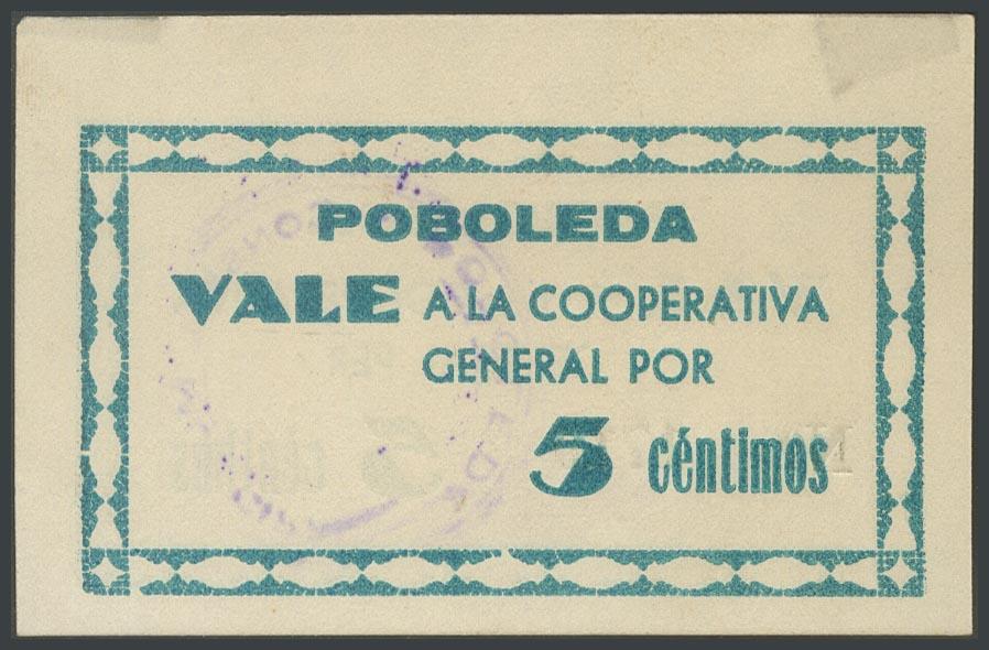 POBOLEDA (TARRAGONA). 5 Céntimos. (1938ca). (González: 9357). Inusual. MBC+.