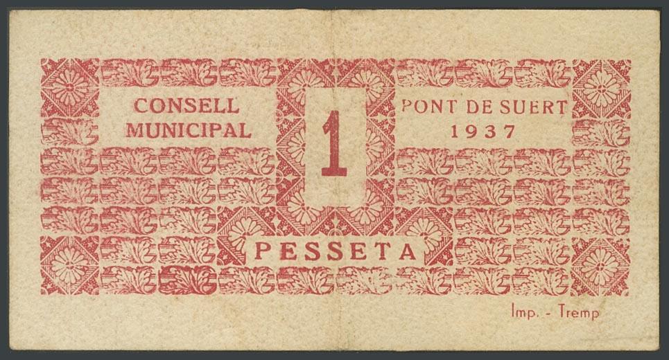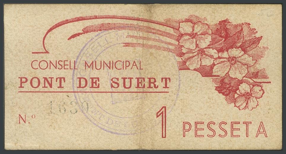 PONT DE SUERT (LERIDA). 1 Peseta. (1937ca). (González: 9384). Raro. MBC.