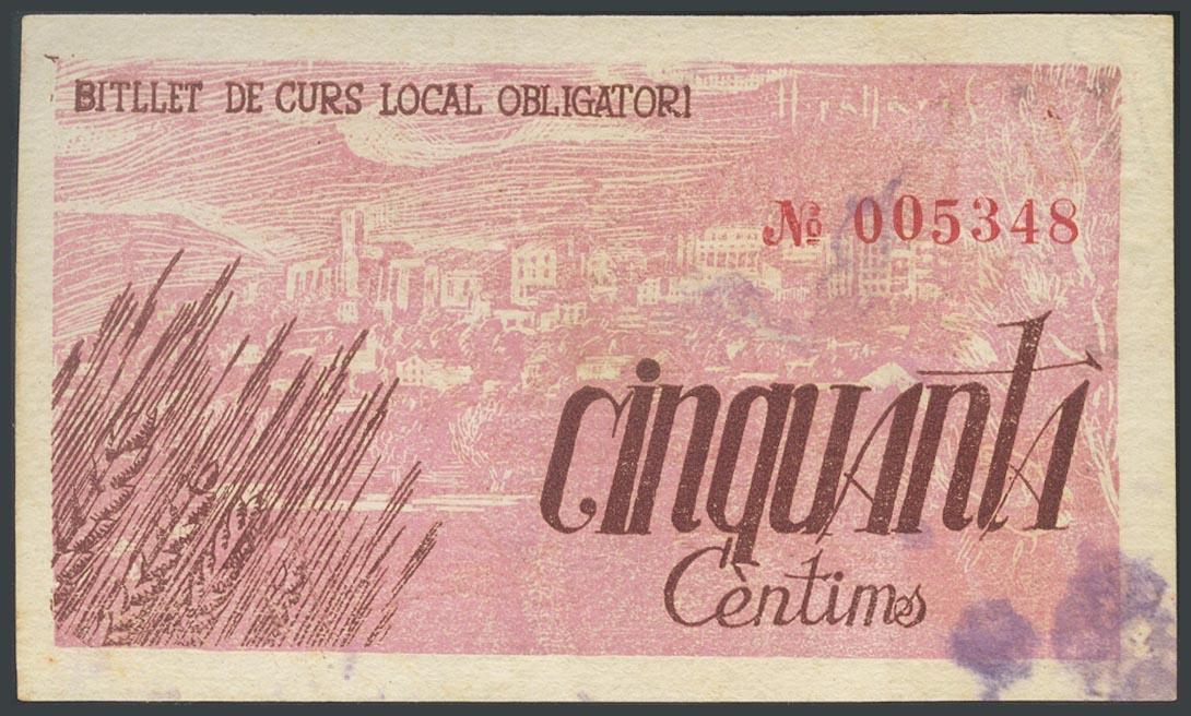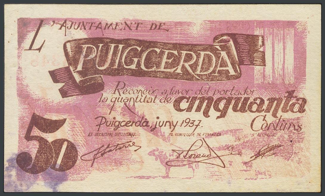 PUIGCERDA (GERONA). 50 Céntimos. Junio 1937. (González: 9487). EBC.