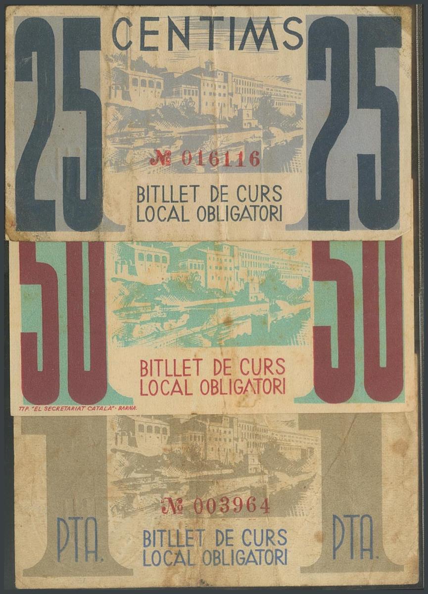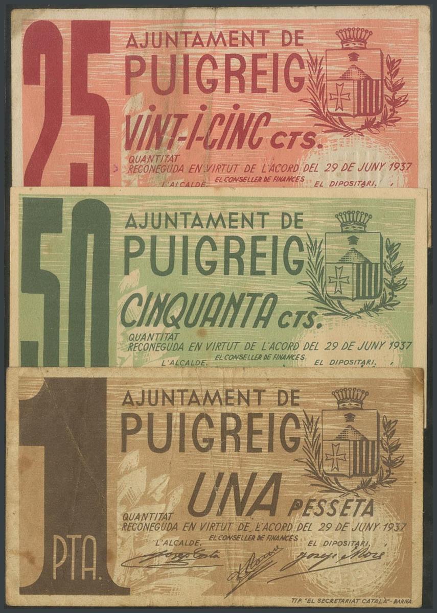 PUIGREIG (BARCELONA). 25 Céntimos, 50 Céntimos y 1 Peseta. 29 de Junio de 1937. (González: 9501/03). MBC+.
