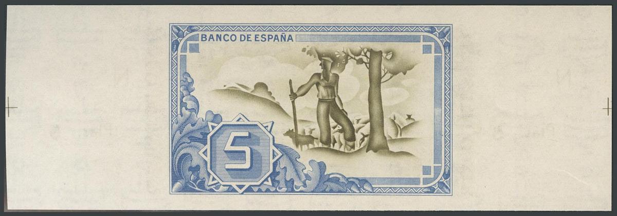 5 Pesetas. 1 de Enero de 1937. Sucursal de Bilbao, antefirma Caja de Ahorros Vizcaína. Sin serie y sin numeración, con ambas matrices. (Edifil 2017: 385b). SC-.
