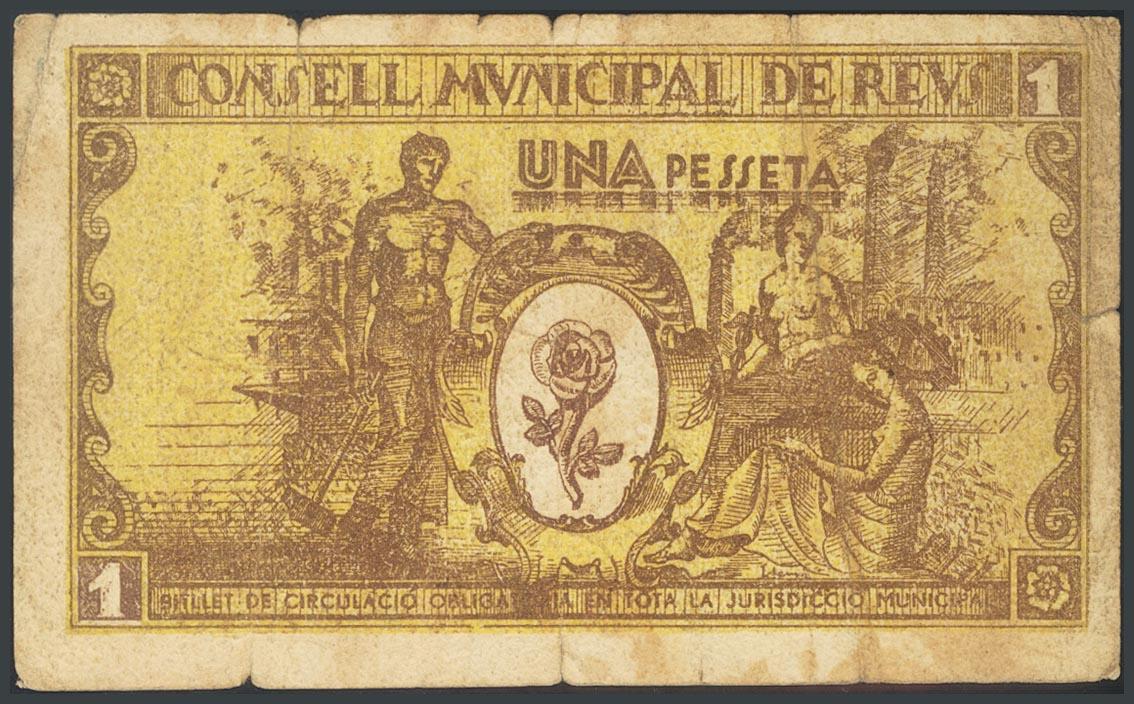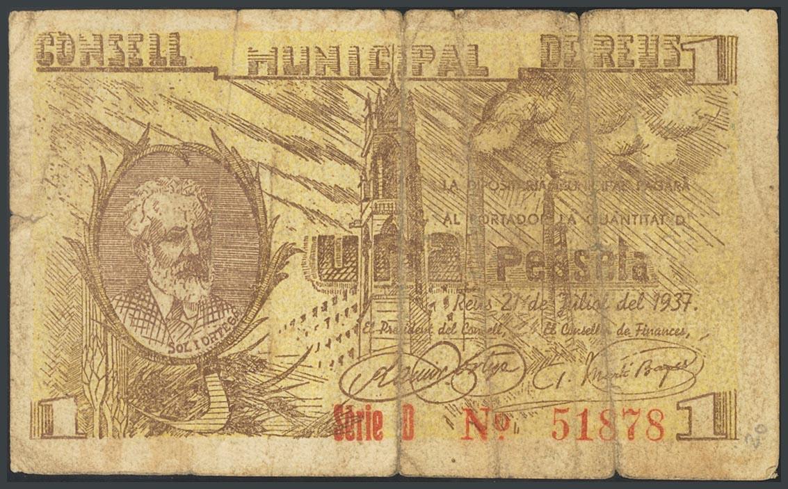 REUS (TARRAGONA). 1 Peseta. 21 de Junio de 1937. (González: 9566). RC.