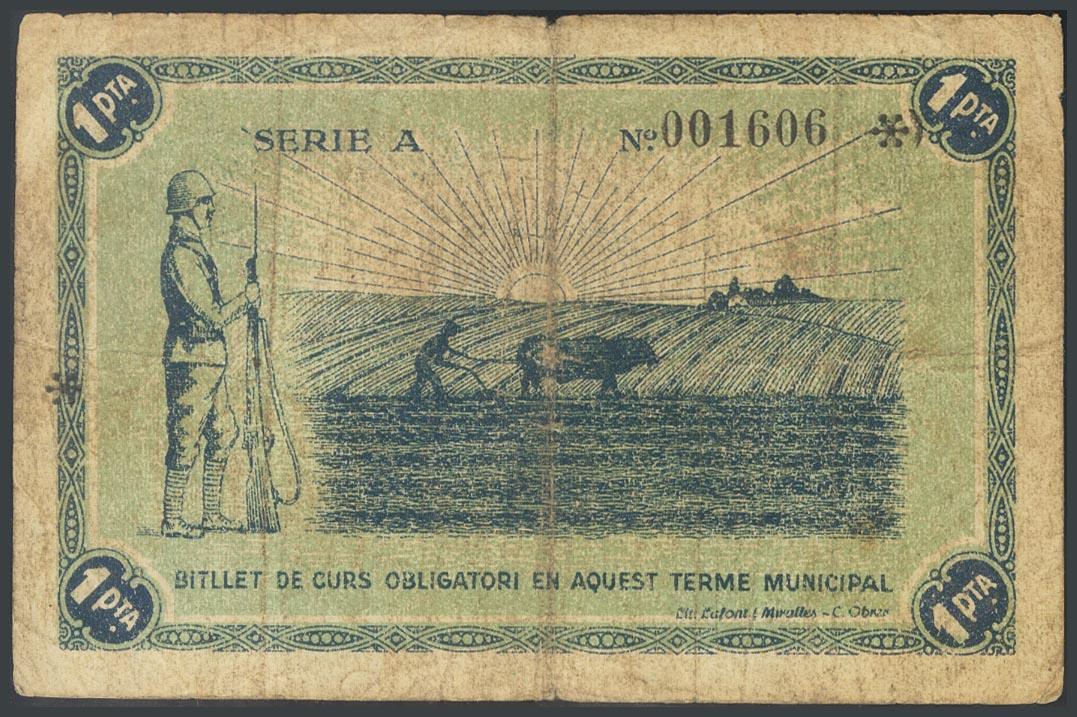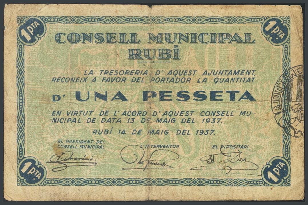 RUBI (BARCELONA). 1 Peseta. 13 de Mayo de 1937. Serie A. (González: 9761). MBC.