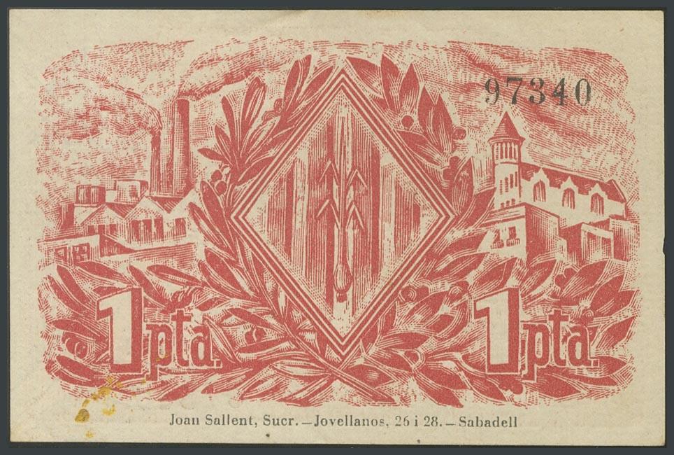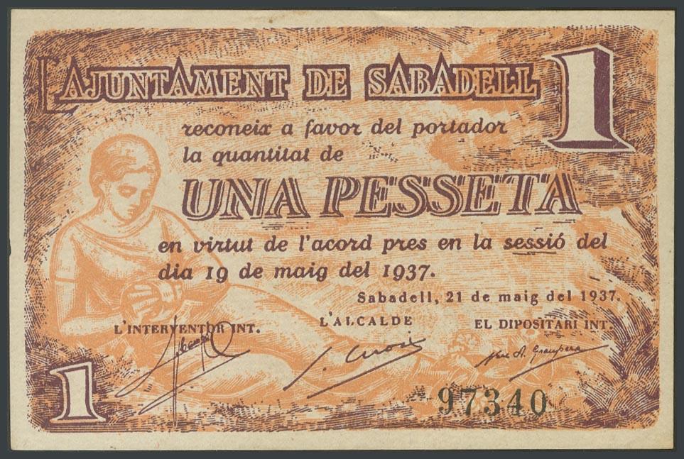 SABADELL (BARCELONA). 1 Peseta. 19 de Mayo de 1937. (González: 9777). EBC.
