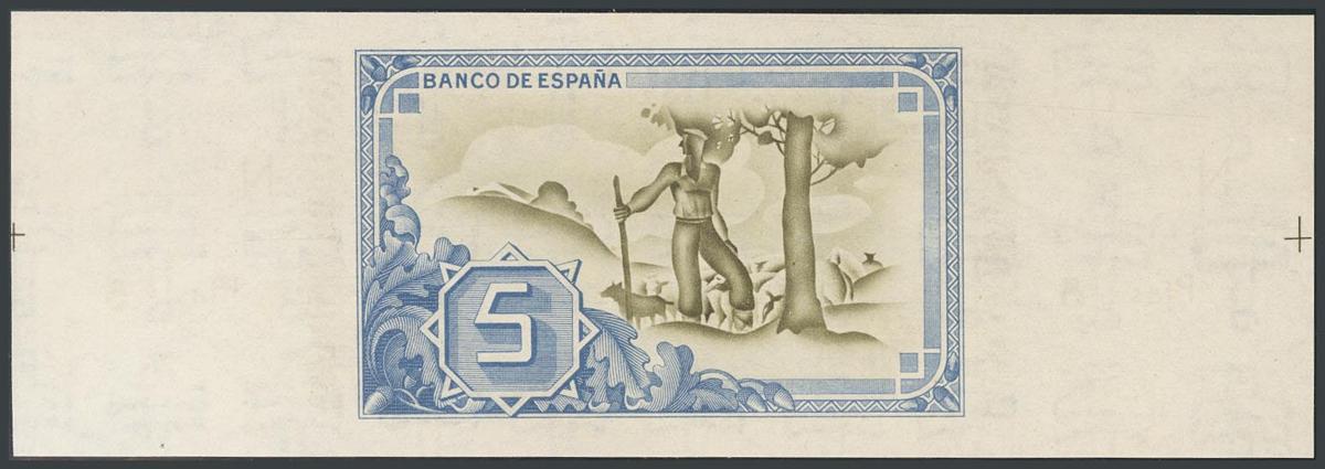 5 Pesetas. 1 de Enero de 1937. Sucursal de Bilbao, antefirma Banco Hispano Americano. Serie A y sin numeración, con ambas matrices. (Edifil 2017: 386a). SC.