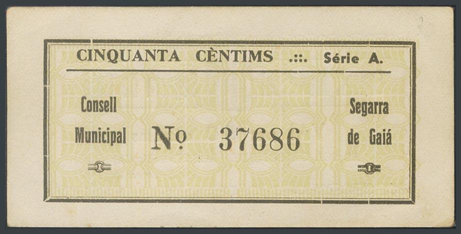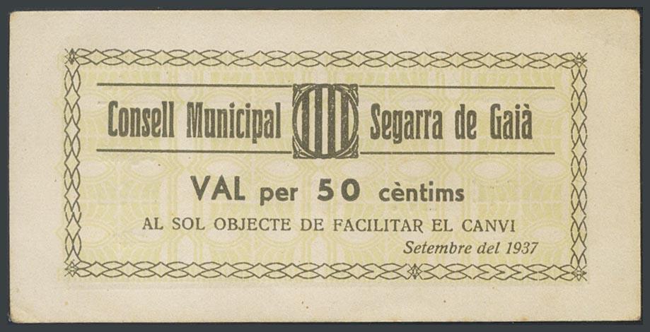 SEGARRA DE GAIA (TARRAGONA). 50 Céntimos. Septiembre 1937. (González: 9912). EBC.