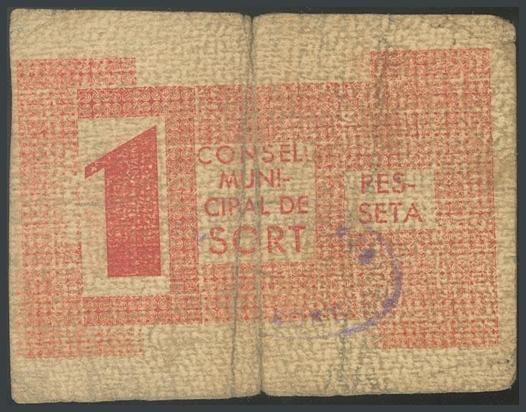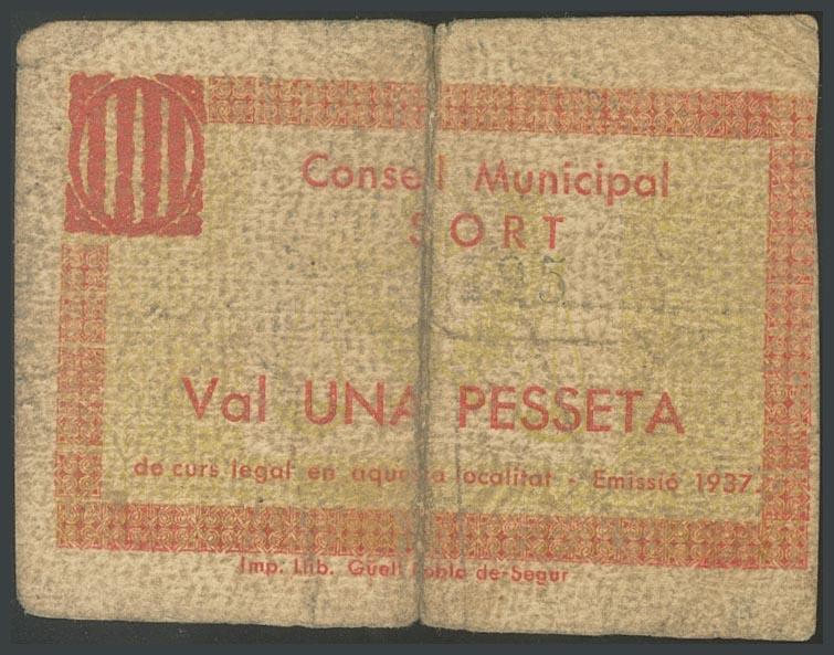 SORT (LERIDA). 1 Peseta. 1937. (González: 10043). Raro. BC.