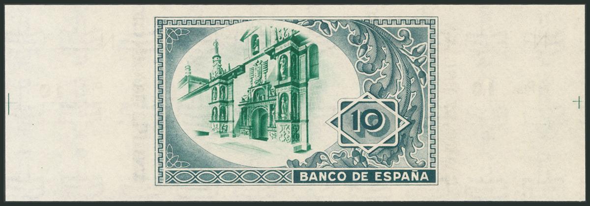 10 Pesetas. 1 de Enero de 1937. Sucursal de Bilbao, antefirma Banco de Bilbao. Sin serie y sin numeración, con ambas matrices. (Edifil 2017: 387a). SC.