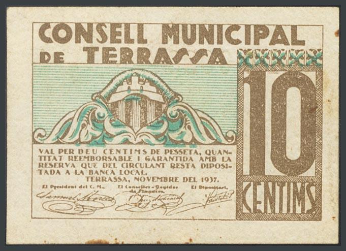 TERRASSA (BARCELONA). 10 Céntimos. 15 de Noviembre de 1937. (González: 10134). MBC.