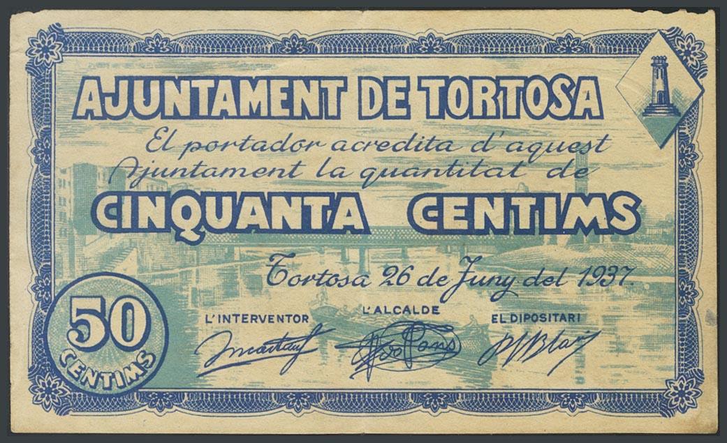 TORTOSA (TARRAGONA). 50 Céntimos. 20 de Junio de 1937. (González: 10408). MBC.