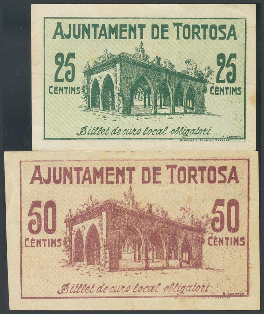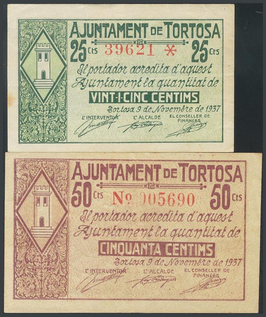 TORTOSA (TARRAGONA). 25 Céntimos y 50 Céntimos. 9 de Noviembre de 1937. (González: 10410, 10411). MBC+.