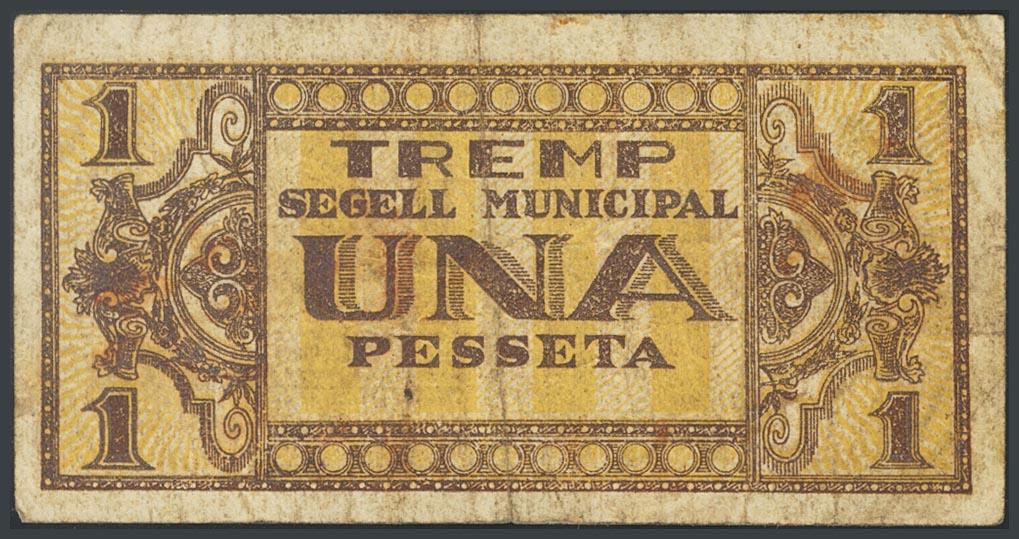 TREMP (LERIDA). 1 Peseta. (1938ca). Serie A. (González: 10443). MBC.