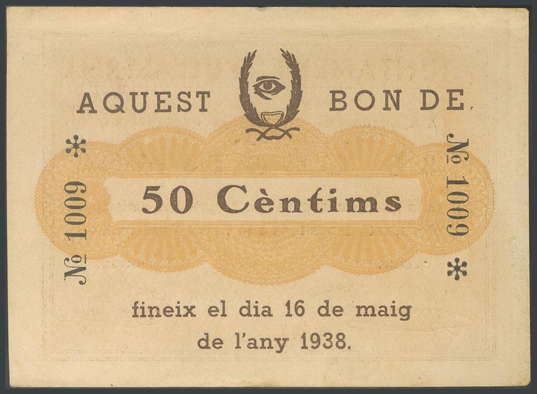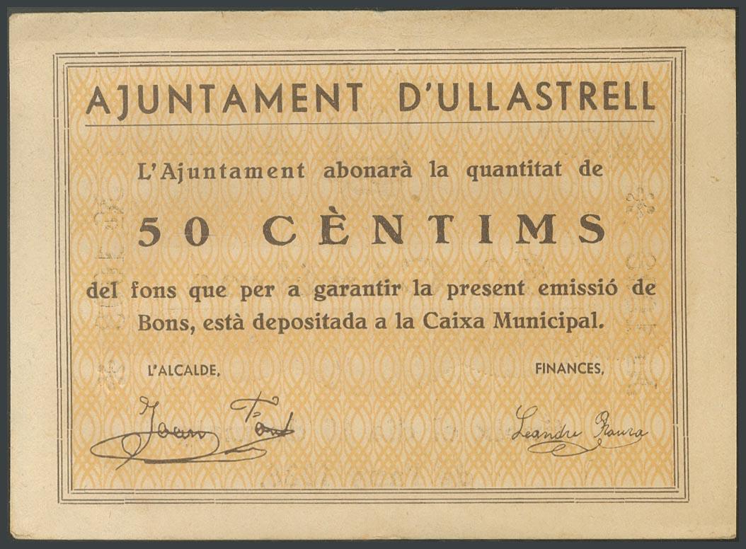 ULLASTRELL (BARCELONA). 50 Céntimos. (1938ca). (González: 10444). Raro. EBC.
