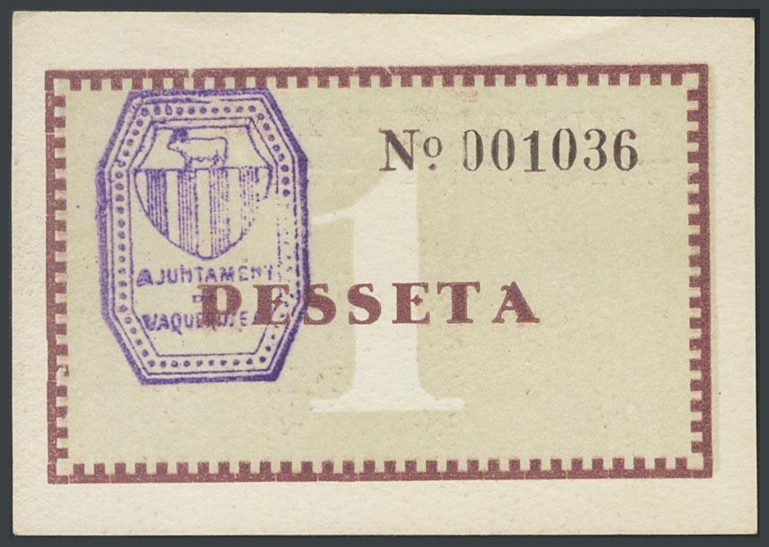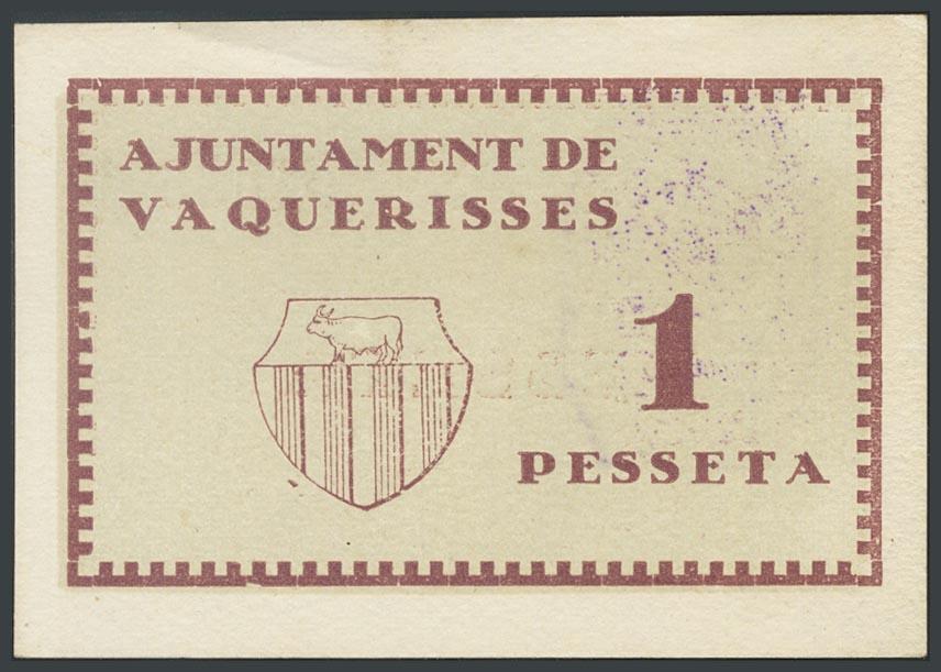 VAQUERISSES (BARCELONA). 1 Peseta. (1937ca). (González: 10476). EBC+.