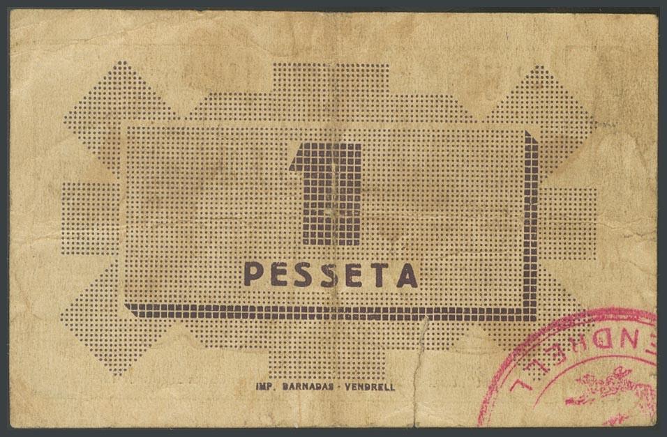VENDRELL (TARRAGONA). 1 Peseta. Mayo 1937. (González: 10598). BC.