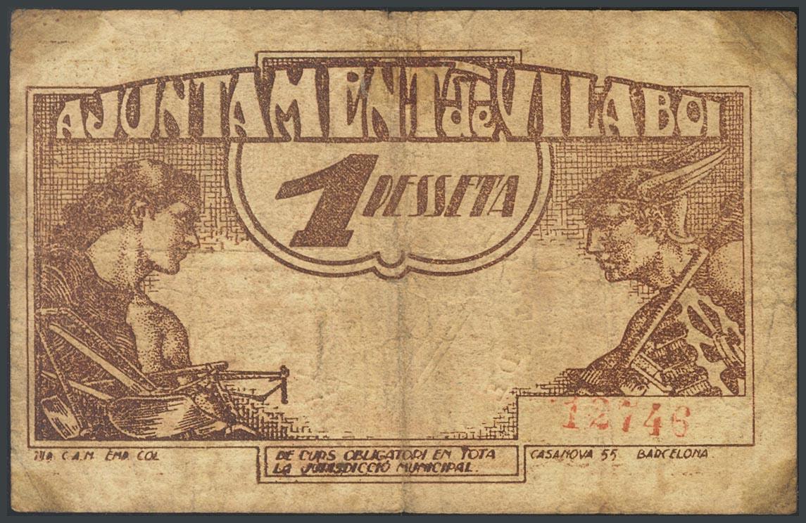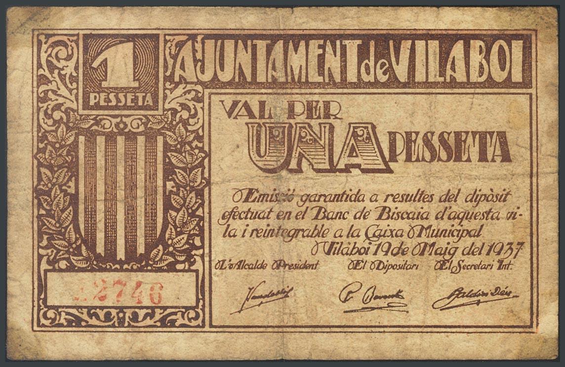 VILABOI (BARCELONA). 1 Peseta. 19 de Mayo de 1937. (González: 10681). BC+.