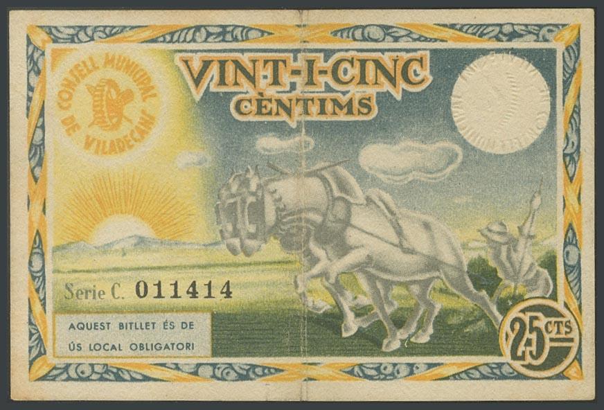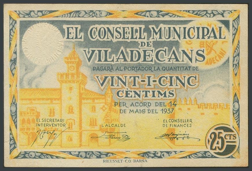 VILADECANS (BARCELONA). 25 Céntimos. 14 de Mayo de 1937. Serie C. (González: 10686). MBC+.