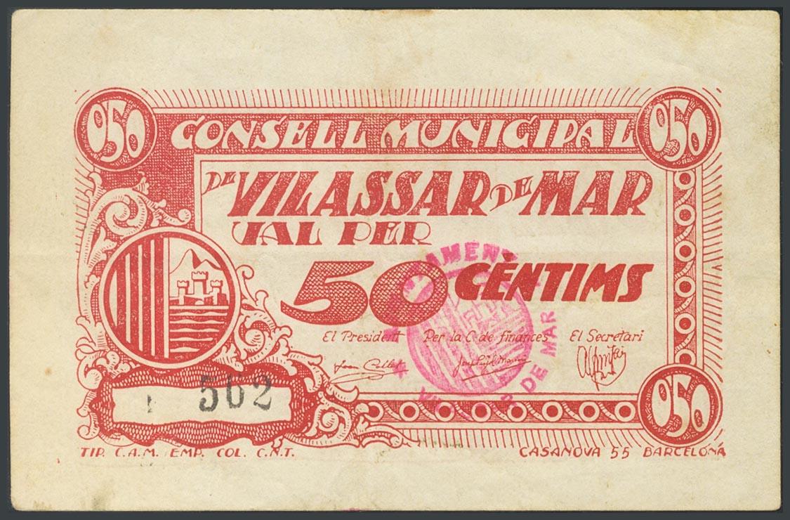 VILASSAR DE MAR (BARCELONA). 50 Céntimos. (1938ca). (González: 10866). MBC+.