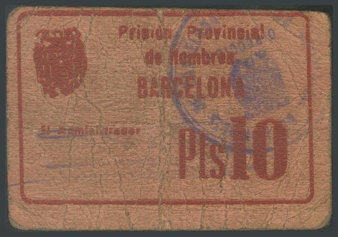 (1950ca). Ficha de 10 Pesetas de la prisión provisional de Barcelona. MBC.