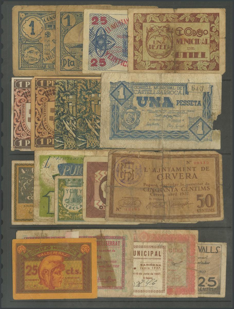 GUERRA CIVIL. Conjunto de 19 billetes de diversas poblaciones, algunas localidades repetidas. A EXAMINAR.