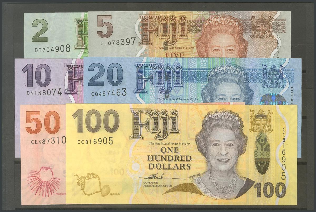 FIJI. 2 Dollars, 5 Dollars, 10 Dollars, 20 Dollars, 50 Dollars and 100 Dollars. 2007. (Pick: 109/14). Uncirculated.