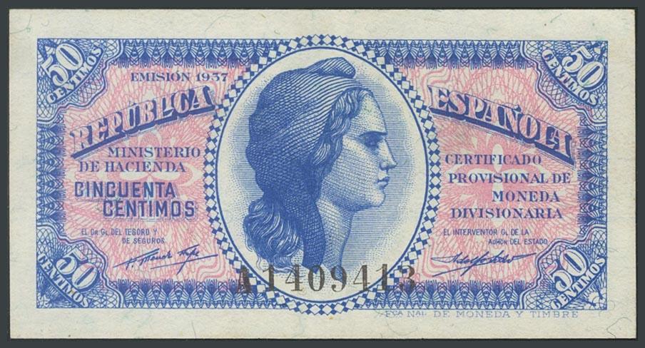 50 Céntimos. 1937. Serie A. (Edifil 2017: 391). EBC+.