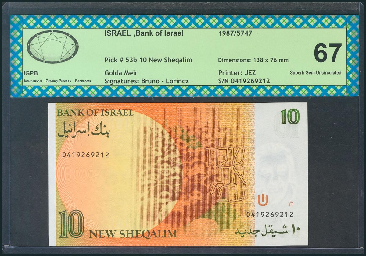 ISRAEL. 10 Nuevas Sheqalim. 1987. (Pick: 53b). Encapsulated IGPB67. Uncirculated.