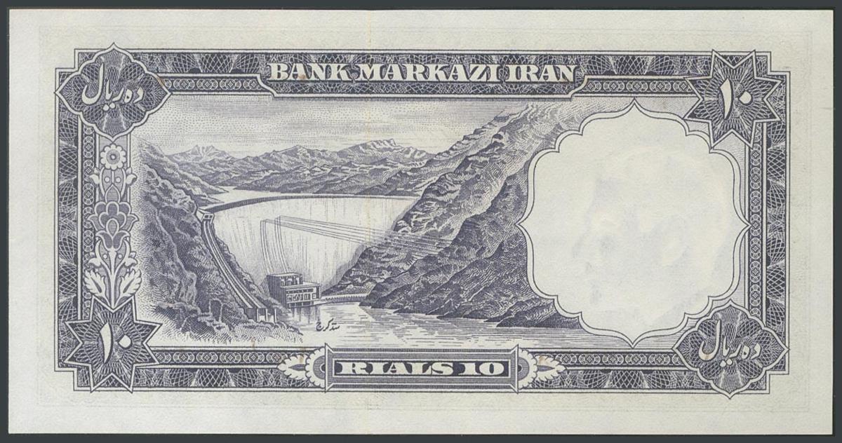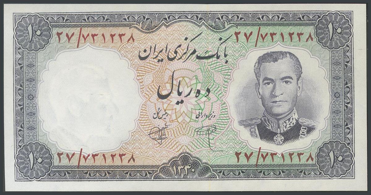 IRAN. 10 Rials. 1961 (AH 1340). National Bank. Signatures: Shoali and Kashani, red serial number. (Pick: 71). Uncirculated.