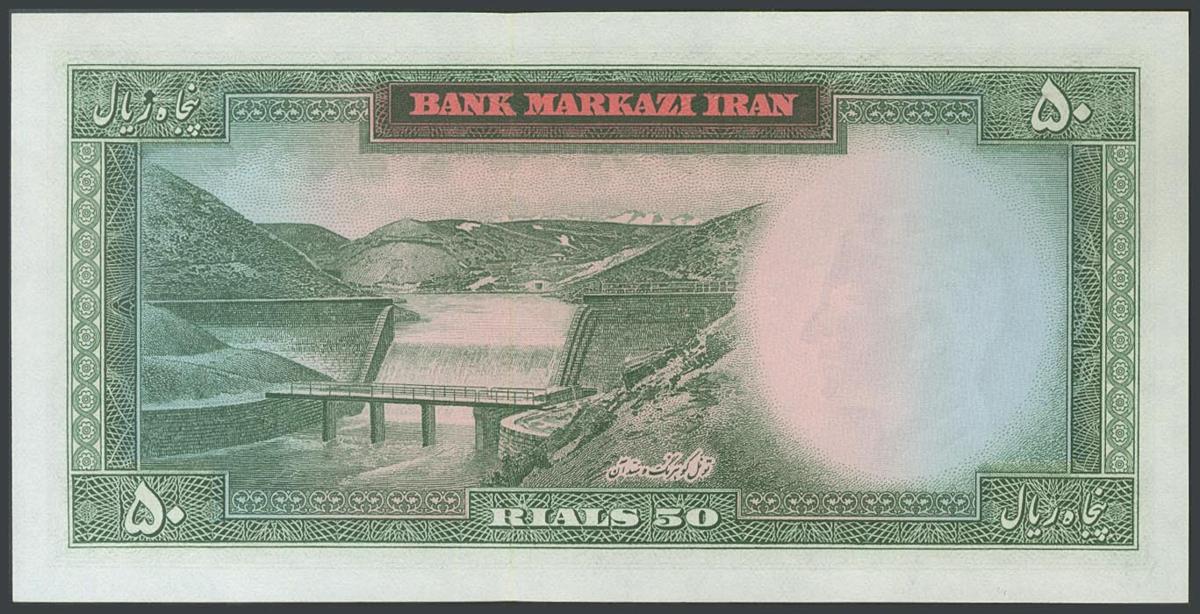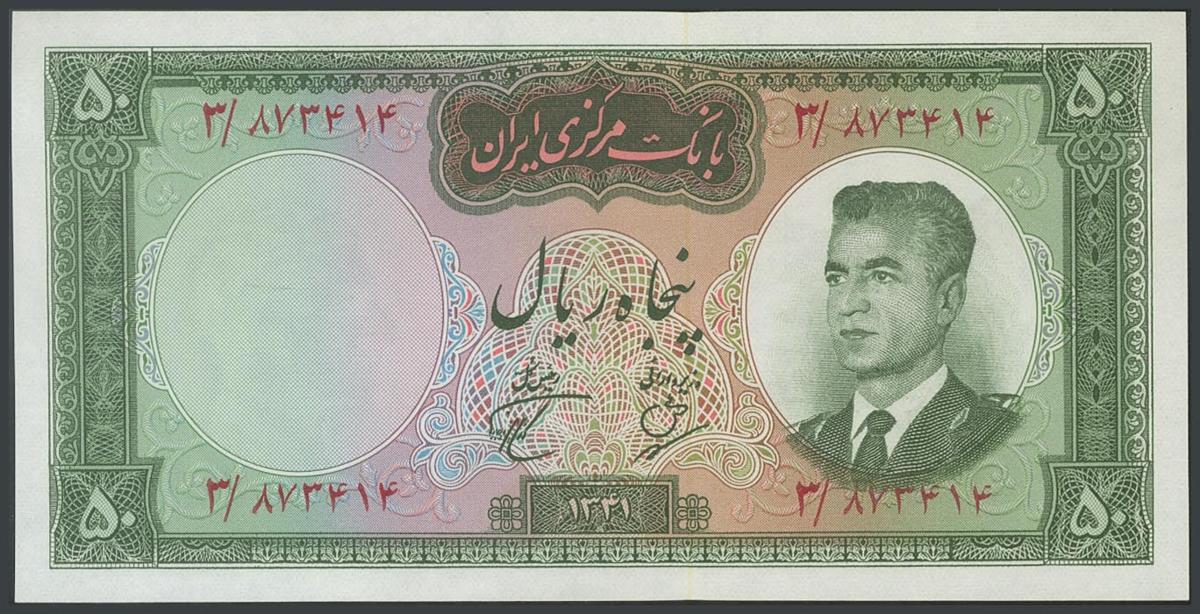 IRAN. 50 Rials. 1962 (AH 1341). National Bank. Signatures: Pouhomayoun and Behnia. (Pick: 73a). Uncirculated.