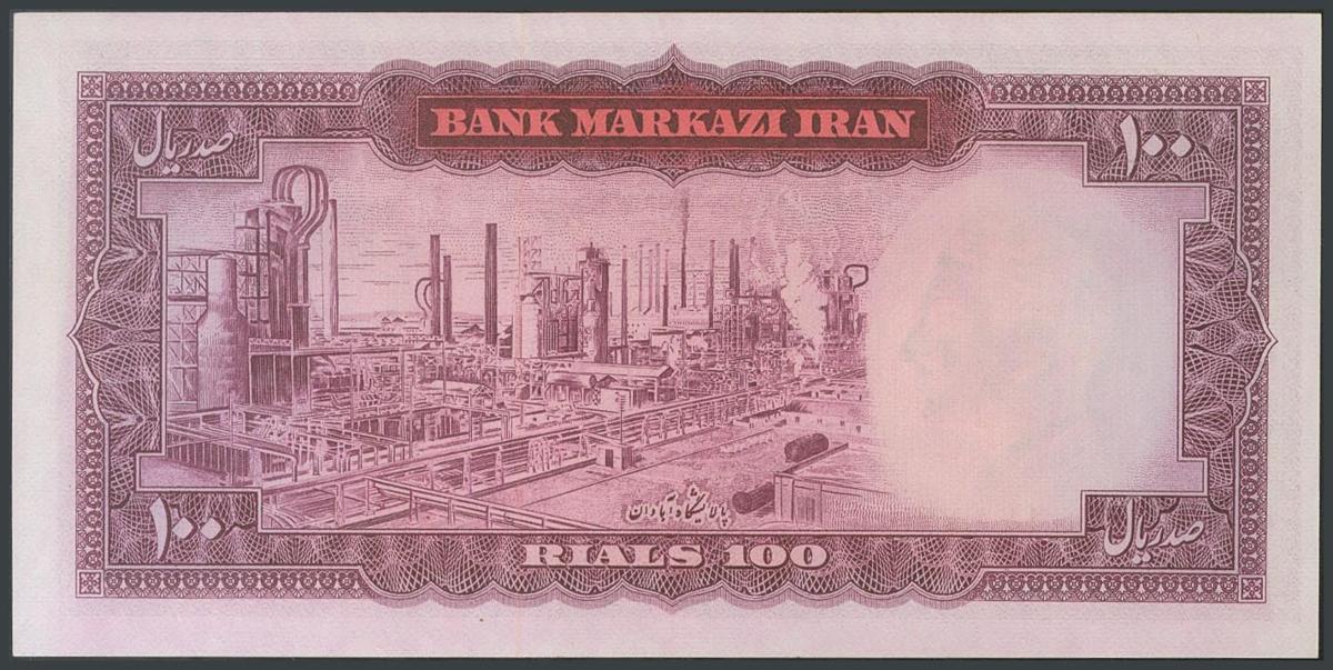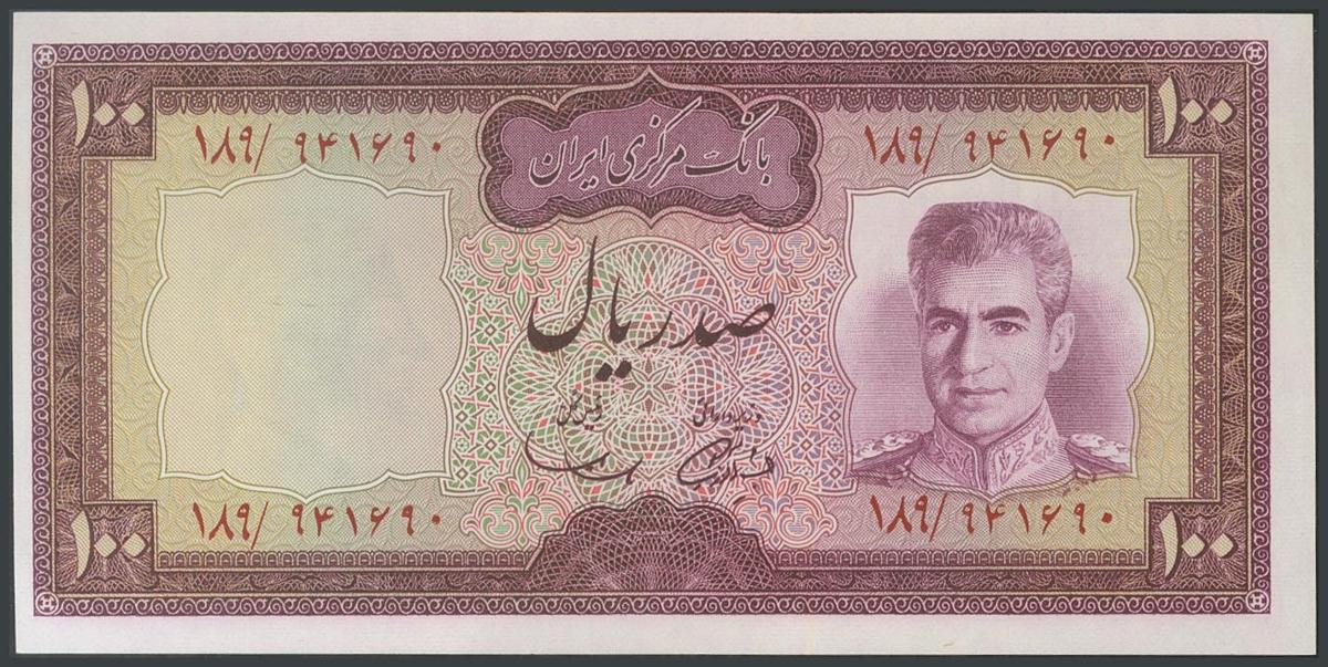 IRAN. 100 Rials. (1971ca). National Bank. Signatures: Samii and Amouzegar, light panel. (Pick: 91a). Uncirculated.