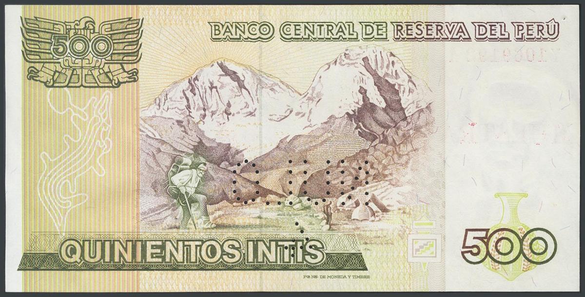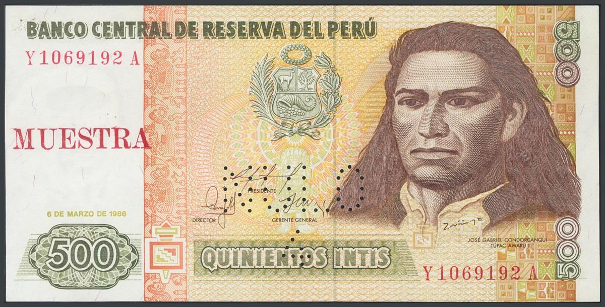 PERU. 500 Intis. 6 de Marzo de 1986. Serie Y-A. MUESTRA (SPECIMEN). (Pick: 135s). Original paper quality. Uncirculated.