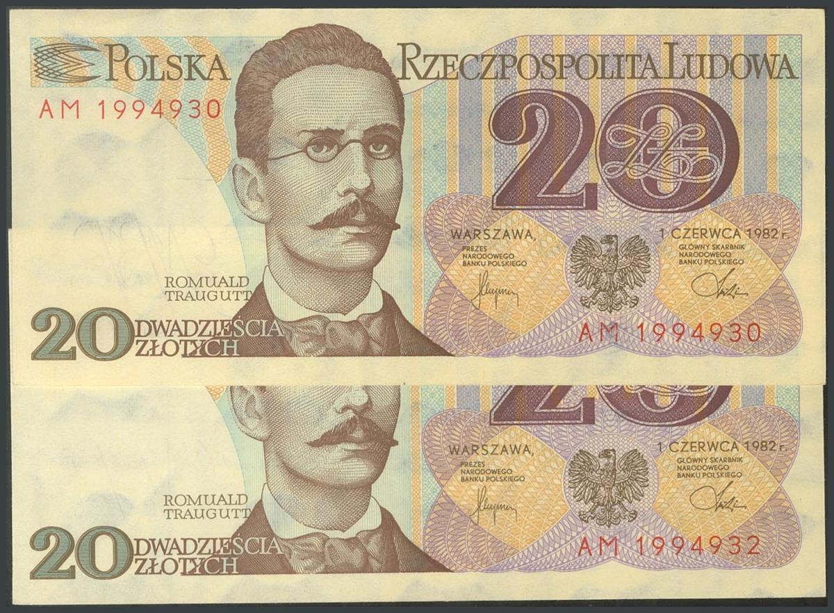 POLAND. 20 Zlotych. 1 June 1982. Consecutive pair. (Pick: 149). Uncirculated.