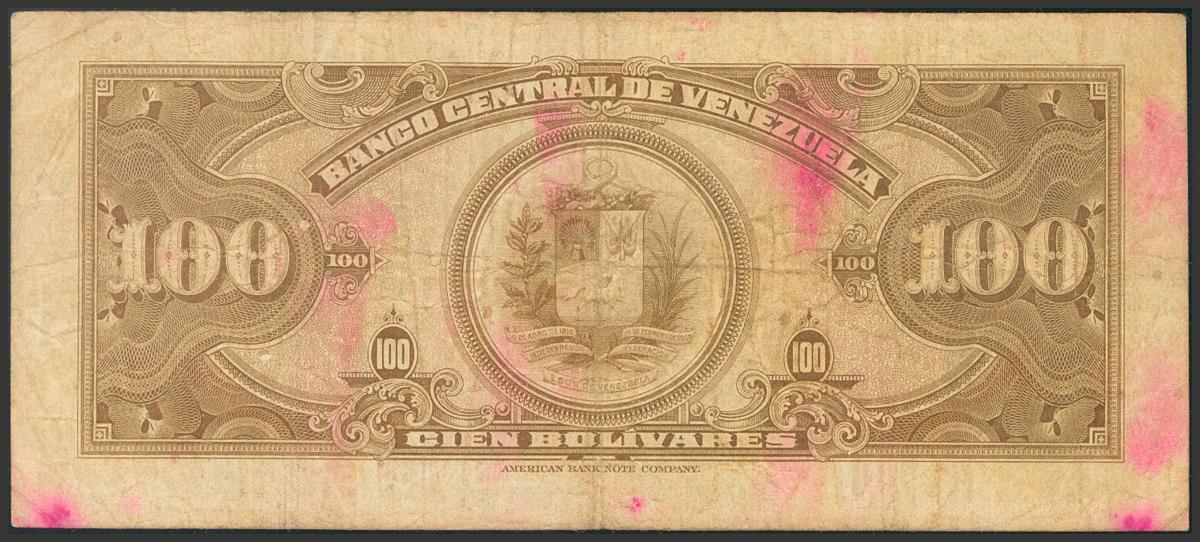 VENEZUELA. 100 Bolívares. 31 de Julio de 1952. Signatures: Carlos Mendoza and González Gorrondona. Serie D and 6 digits. (Pick: 34a, Sleiman: 40). F