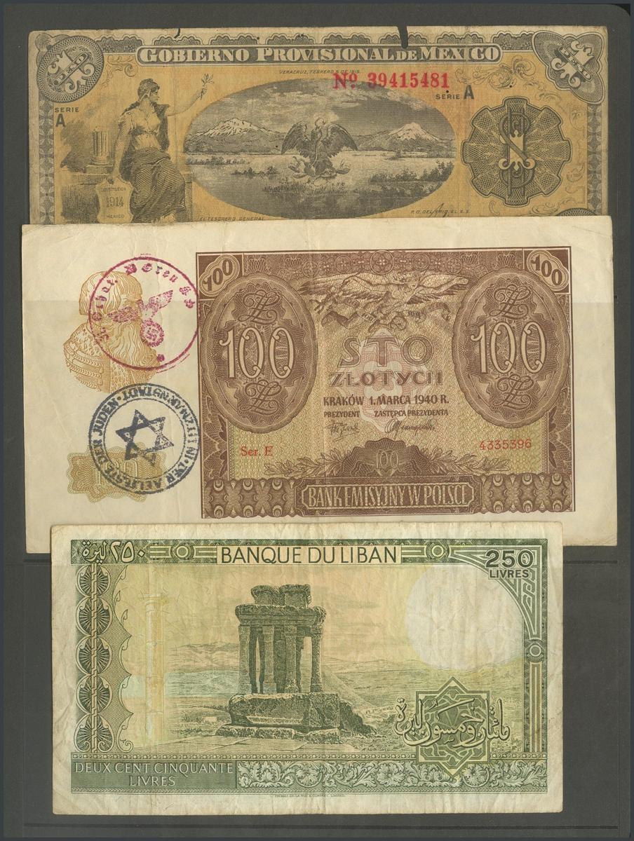 Conjunto de 13 billetes extranjeros de diversos paises y en diferentes calidades. A EXAMINAR.