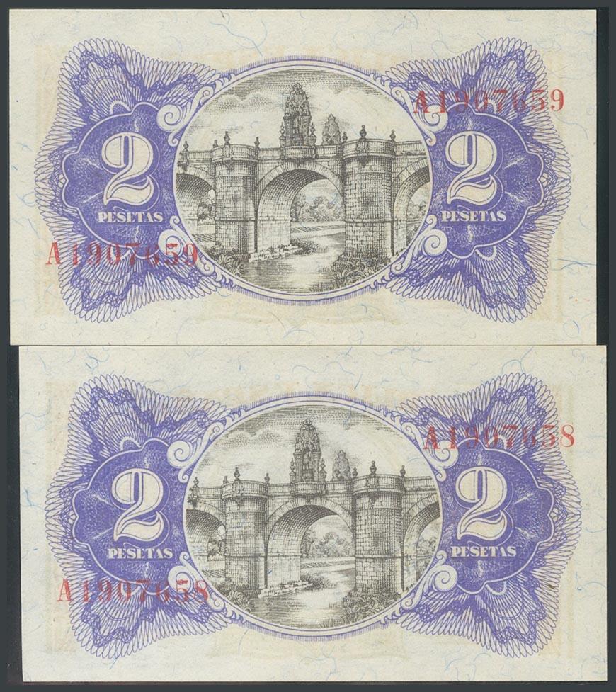 2 Pesetas. 1936. Pareja correlativa. Serie A. (Edifil 2017: 393). SC-.