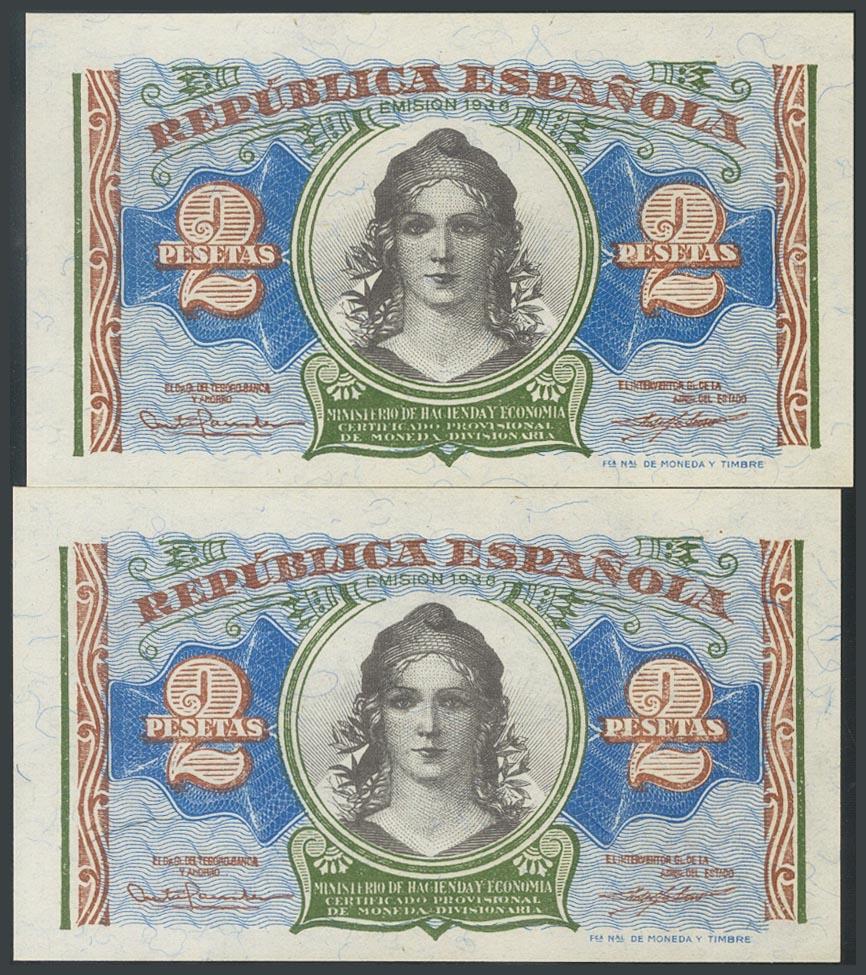 2 Pesetas. 1936. Pareja correlativa. Serie A. (Edifil 2017: 393). SC-.