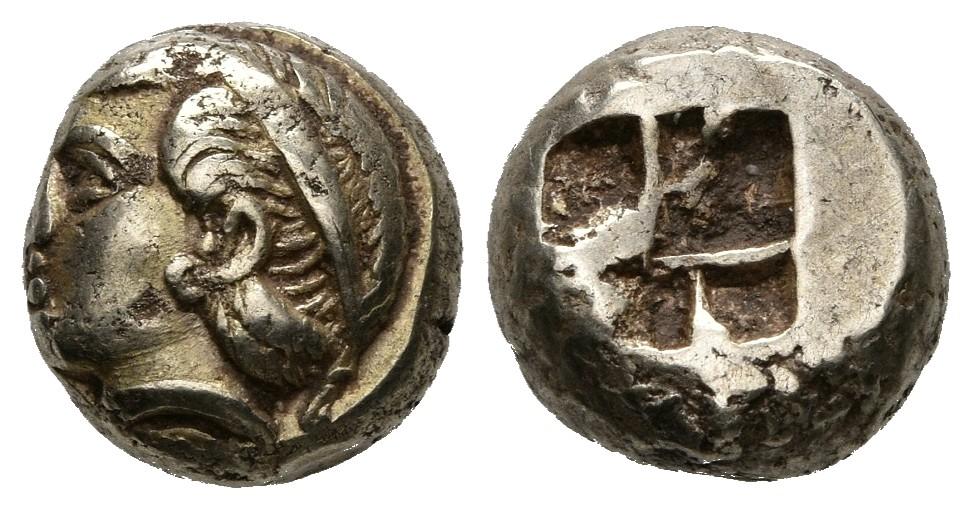 JONIA, Focea. 1/6 Estátera. (El. 2,53g/10mm). 478-387 a.C. Anv: Cabeza femenina a izquierda. Rev: Cuadrado cuatripartito incuso. (SNG von Aulock 2126). MBC+.