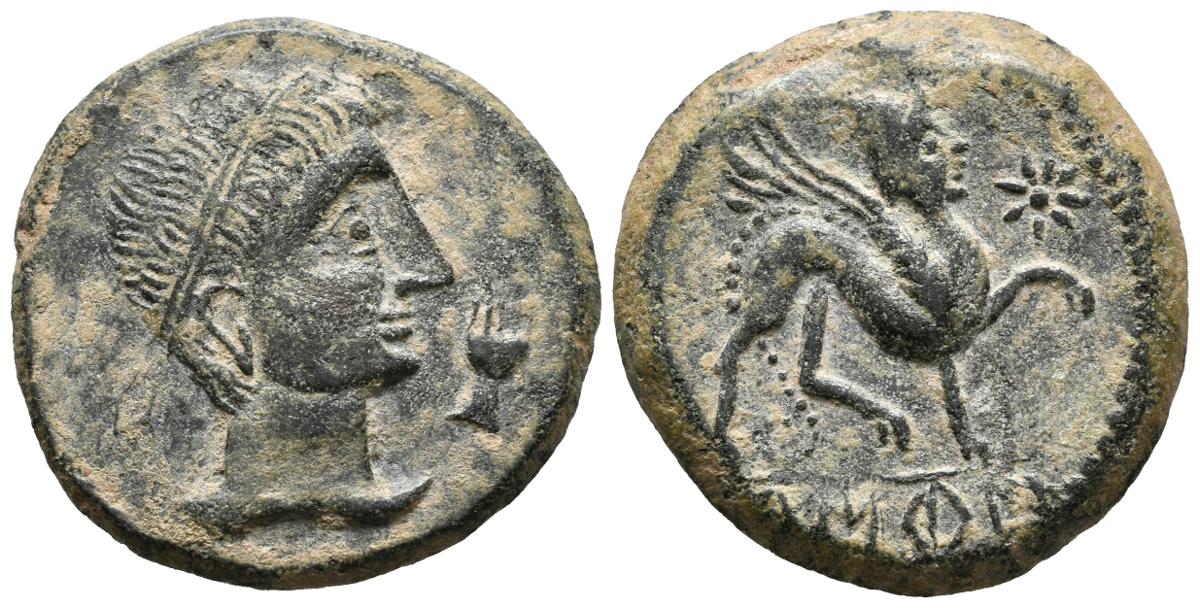 CASTULO (Cazlona, Jaén). As. (Ae. 12,85g/26mm). 180 a.C. Anv: Cabeza masculina diademada a derecha, delante mano. Rev: Esfinge a derecha, delante estrella, debajo: CaSTeLE. (FAB-700). MBC+. Campos rebajados y repatinado.