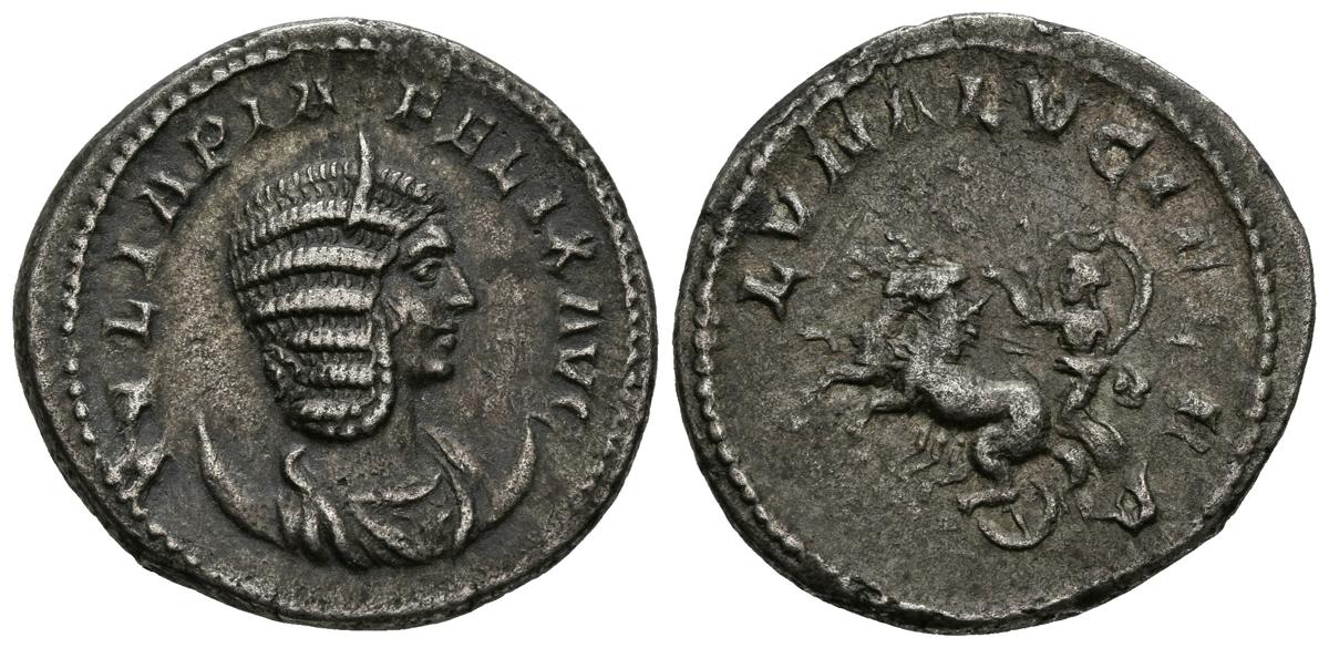JULIA DOMNA. Antoniniano. (Ar. 4,99g/23mm). 215-217 d.C. Roma. Anv: IVLIA PIA FELIX AVG. Busto diademado y drapeado a derecha de Julia Domna sobre creciente. Rev: LVNA LVCIFERA. Luna conduciendo biga a izquierda. (RIC 379a). MBC.