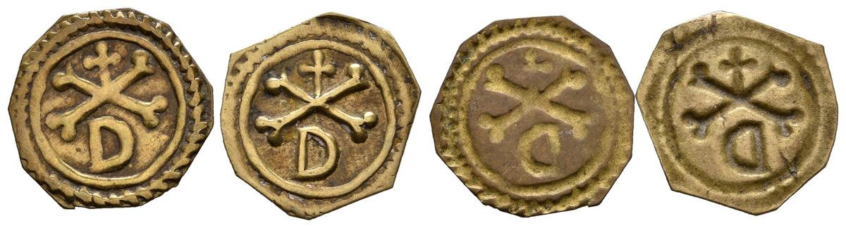 PRAT DE REI. Bonito conjunto de 2 Pellofas (Cru.L. 2008). Fémures cruzados y Cruz. Orlas lineales y de puntos. Diferentes estados de conservación. A EXAMINAR.