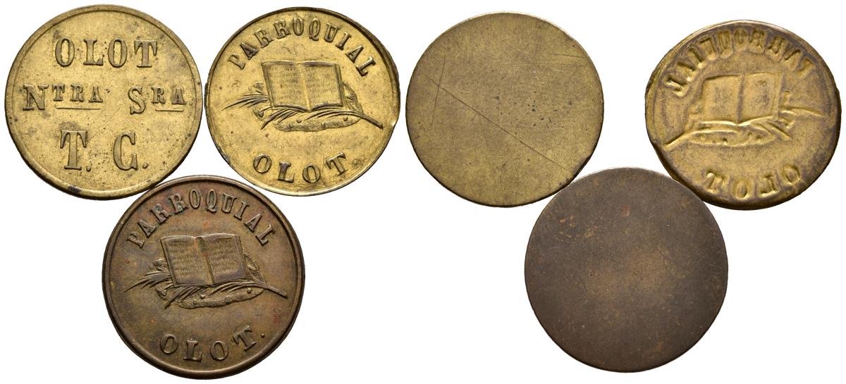 OLOT. Conjunto de 3 Jetones (Cru.L. 1928 y 1929). Diferentes estados de conservación. A EXAMINAR.