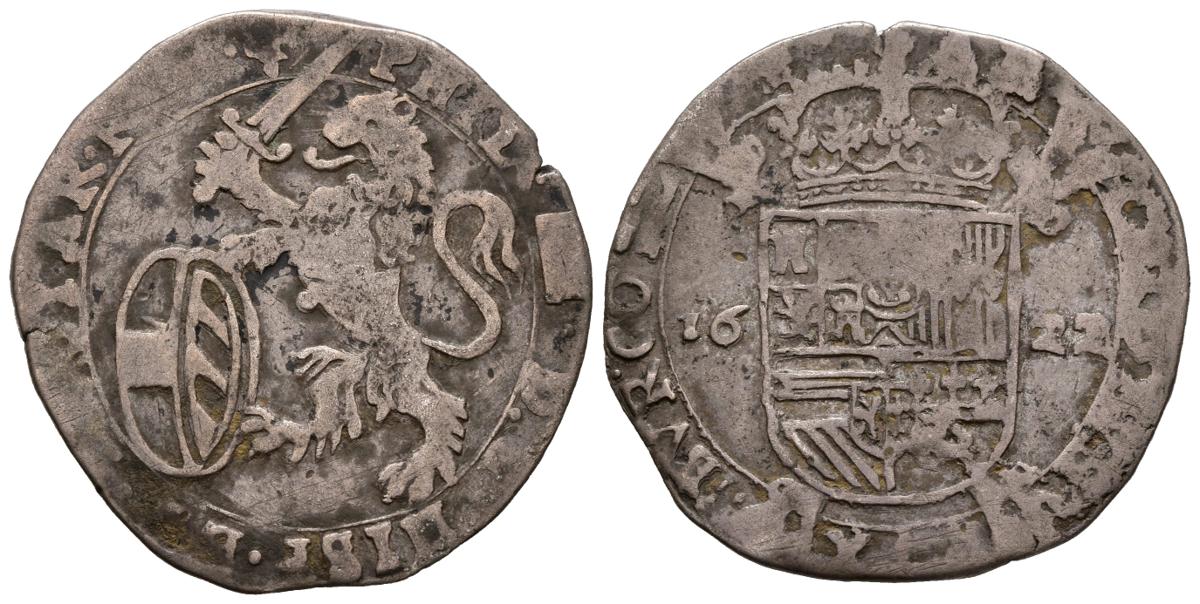 FELIPE IV (1621-1665). 1 Escalín. (Ar. 5,07g/29mm). 1622. Amberes. (Vicenti 531). MBC-.
