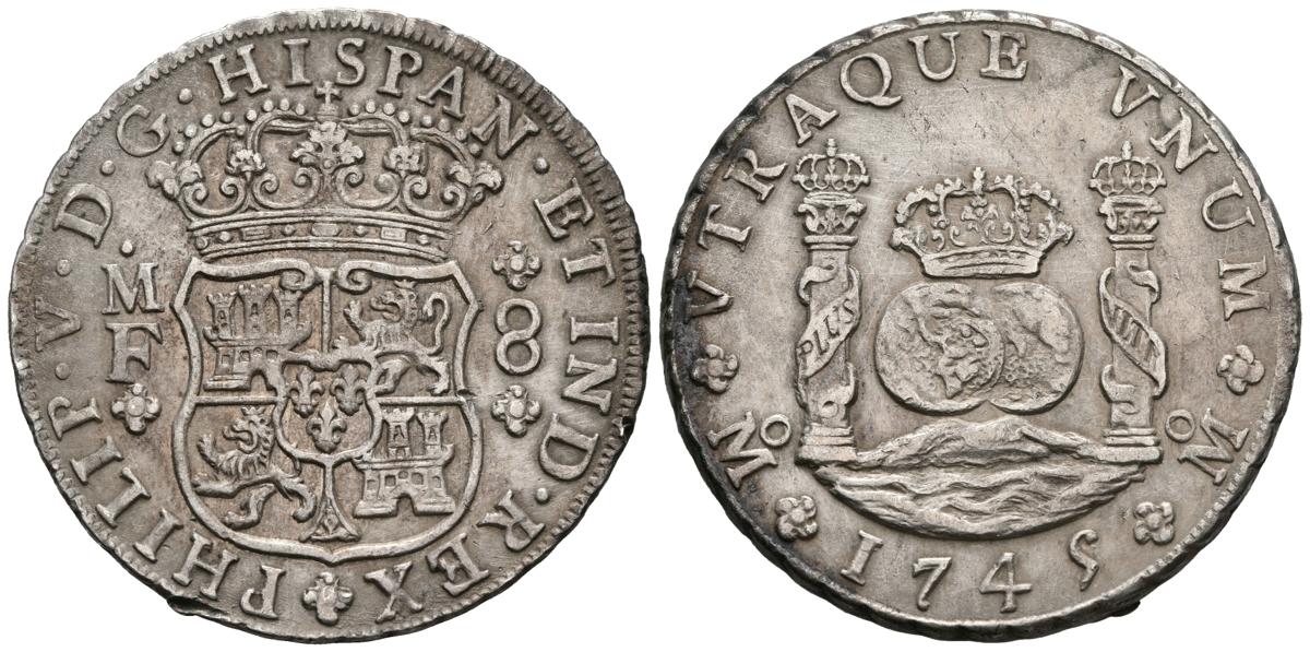 FELIPE V (1700-1746). 8 Reales. (Ar. 26,91g/39mm). 1745. México MF. (Cal-2019-1468). MBC+.