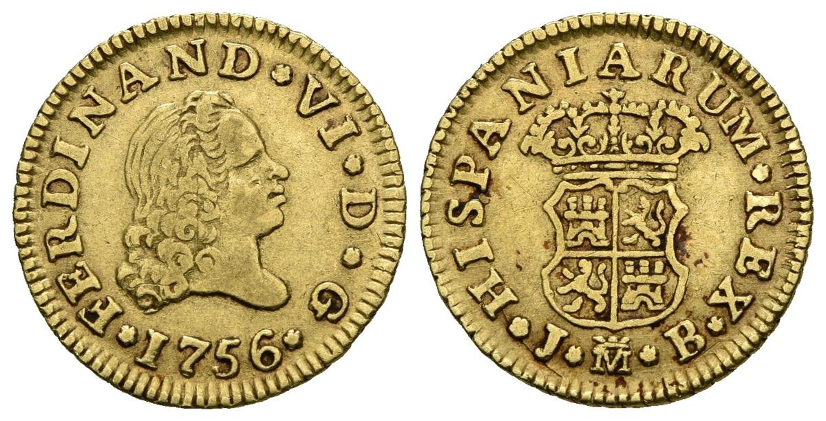 FERNANDO VI (1746-1759). 1/2 Escudo. (Au. 1,74g/15mm). 1756. Madrid JB. (Cal-2019-559). MBC+.