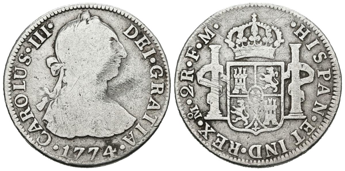 CARLOS III (1759-1788). 2 Reales. (Ar. 6,39g/26mm). 1774. México. FM. (Cal-2019-660). BC+.