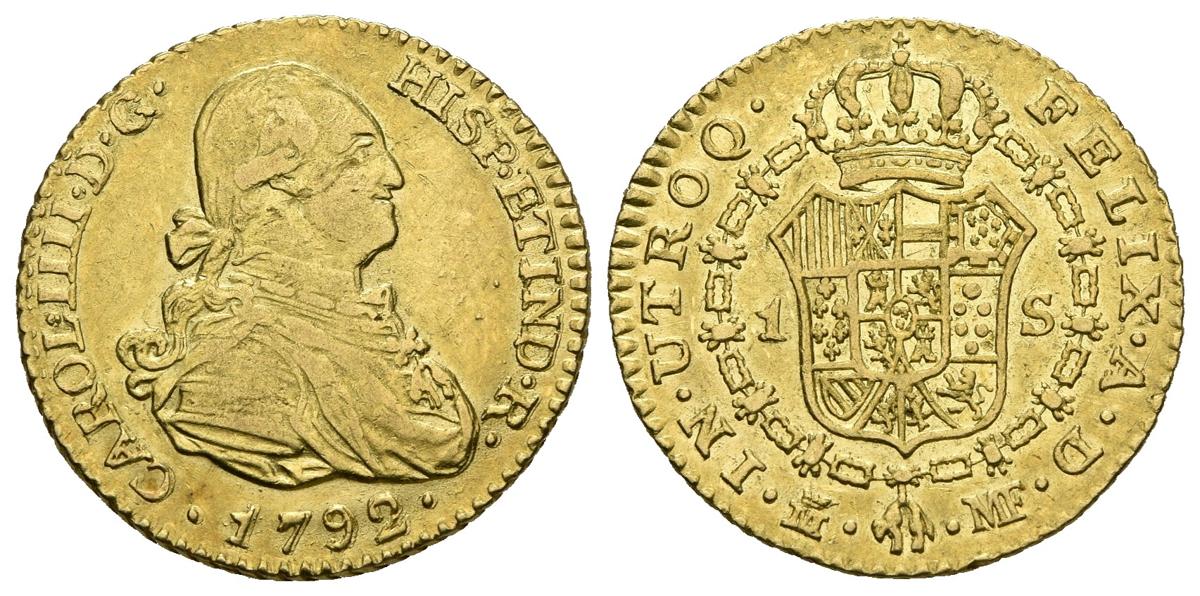 CARLOS IV (1788-1808). 1 Escudo. (Au. 3,32g/18mm). 1792. Madrid MF. (Cal-2019-1109). EBC-/EBC.