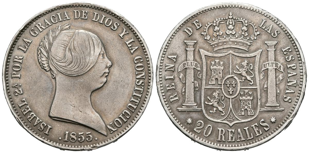 ISABEL II (1833-1868). 20 Reales. (Ar. 25,87g/37mm). 1855. Sevilla. (Cal-2019-632). EBC-.