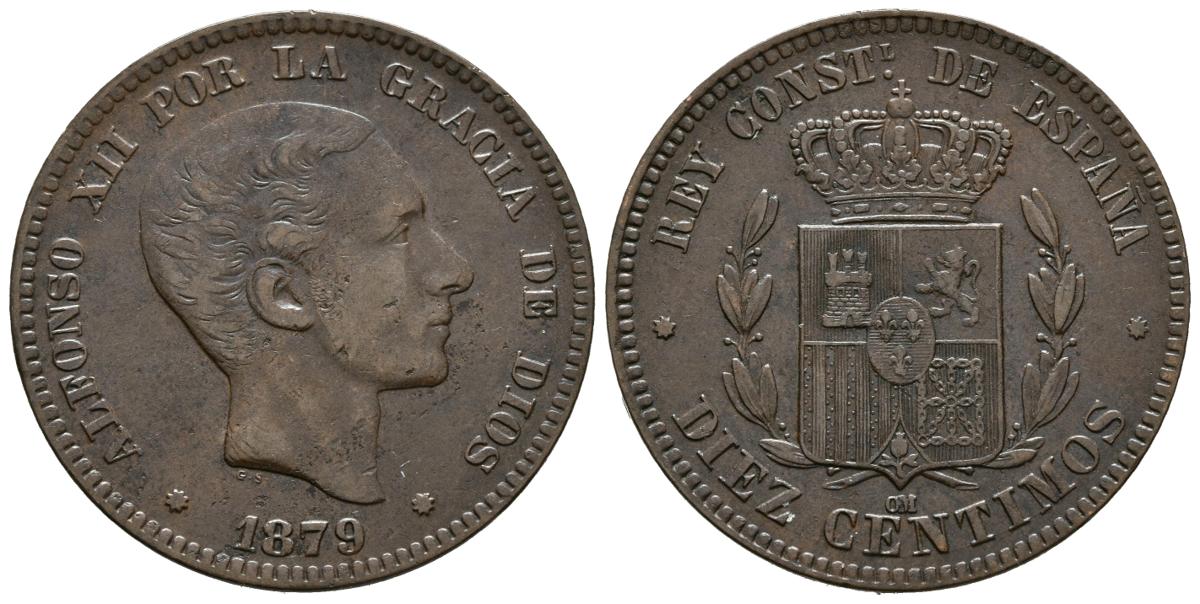 ALFONSO XII (1874-1885). 10 Céntimos (Ae. 9.831g/30mm). 1879. Barcelona. (Cal-2019-10). MBC+/EBC-.