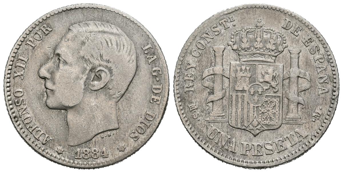ALFONSO XII (1874-1885). 1 Peseta. (Ar. 4,87g/23mm). 1884 *18-84. Madrid MSM. (Cal-2019-23). BC+/MBC-. Escaso.