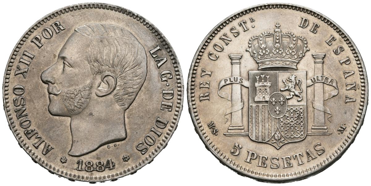ALFONSO XII (1874-1885). 5 Pesetas. (Ar. 24,87g/37mm). 1884 *18-84. Madrid MSM. (Cal-2019-57). EBC. Bonito ejemplar.